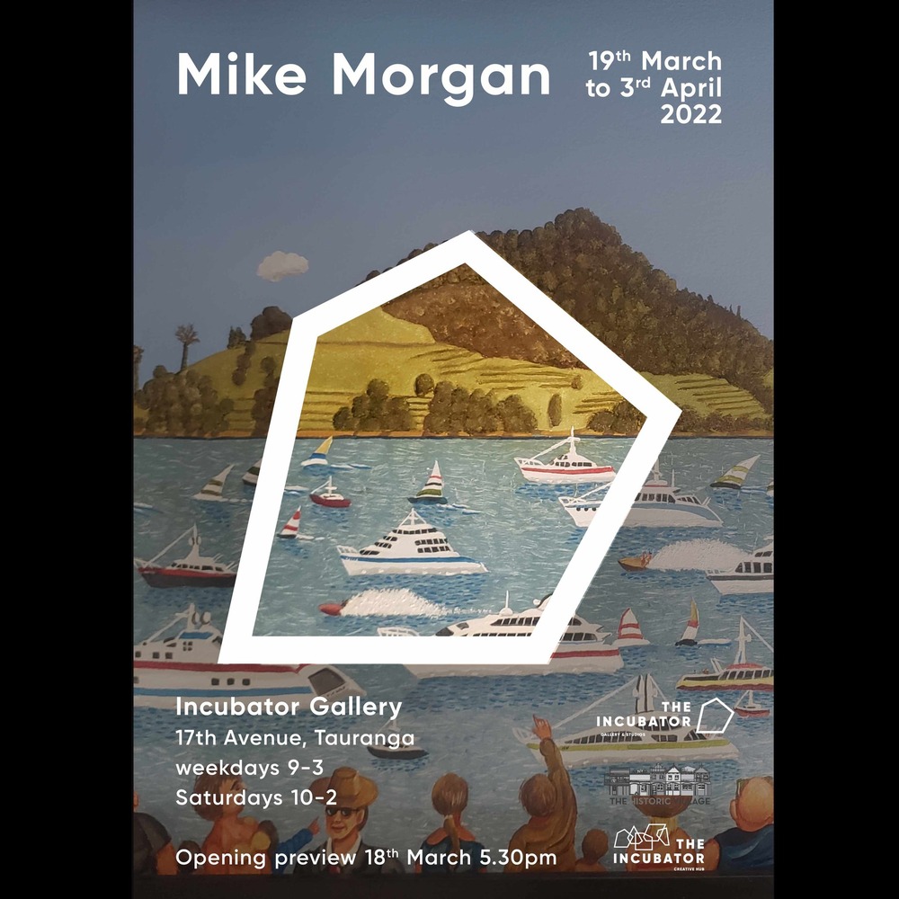 An exhibition preview of 31 of Mike Morgan’s paintings opens in the Incubator Gallery, Historic Village, 17th Ave, Tauranga at 5.30 pm today. Then the exhibition runs until April the 3rd and is open from 9 am to 3 pm Monday to Friday and on Saturdays between 10 am and 2 pm.