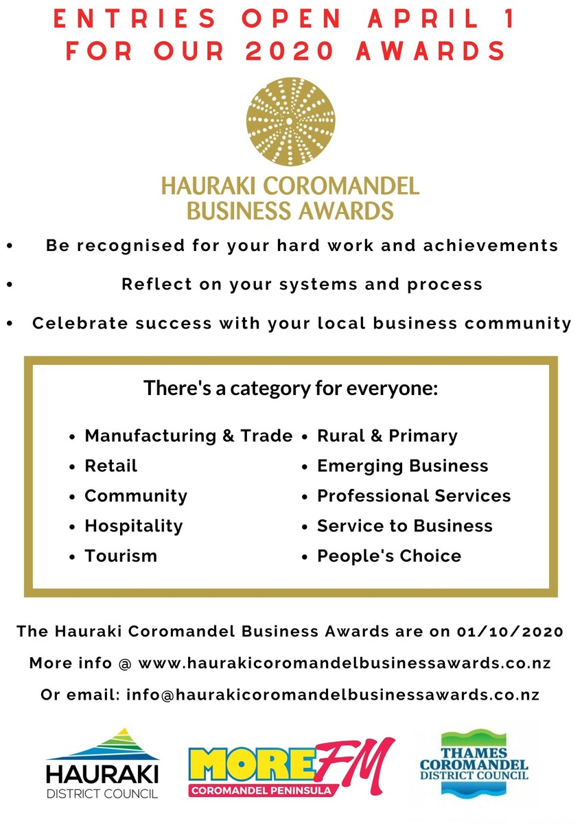 Businesses from with the Hauraki District Council and Thames Coromandel District Council areas are eligible to enter the awards.