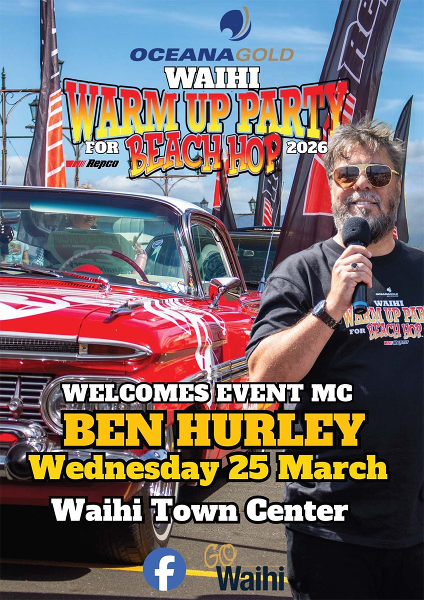Classic cars, great people, and a full day of colour and noise in the heart of Waihi. Local and world-famous comedian Ben Hurley returns as MC again this year, keeping the laughs rolling and energy high alongside the engines.